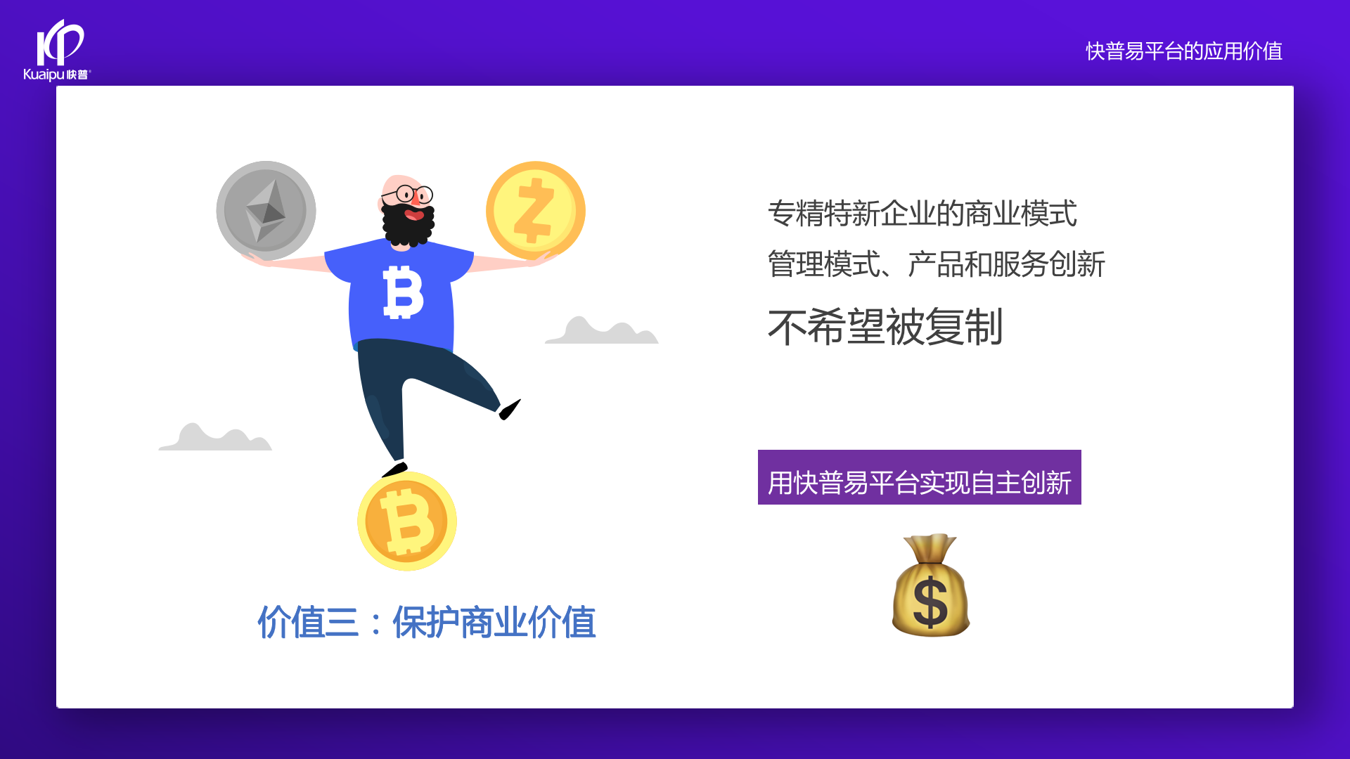 7、專精特新企業(yè)的商業(yè)模式、管理模式、產(chǎn)品和服務(wù)創(chuàng)新不希望被復(fù)制,用快普易平臺(tái)實(shí)現(xiàn)自主創(chuàng)新,保護(hù)商業(yè)機(jī)密。