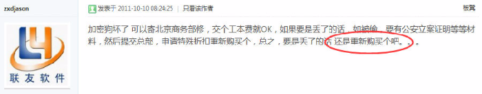 1、有一家客戶反應公司搬遷時快普軟件加密狗丟失并且提供了公安局蓋章證明原件,事后發(fā)現(xiàn)原來的軟件加密狗并沒有丟失,還在正常使用,經(jīng)過多次溝通拒不還回新發(fā)的軟件加密狗。