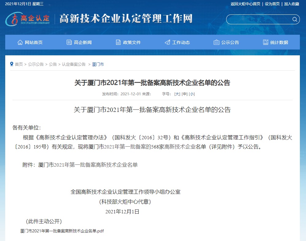 獲國家高企認(rèn)定辦批復(fù)