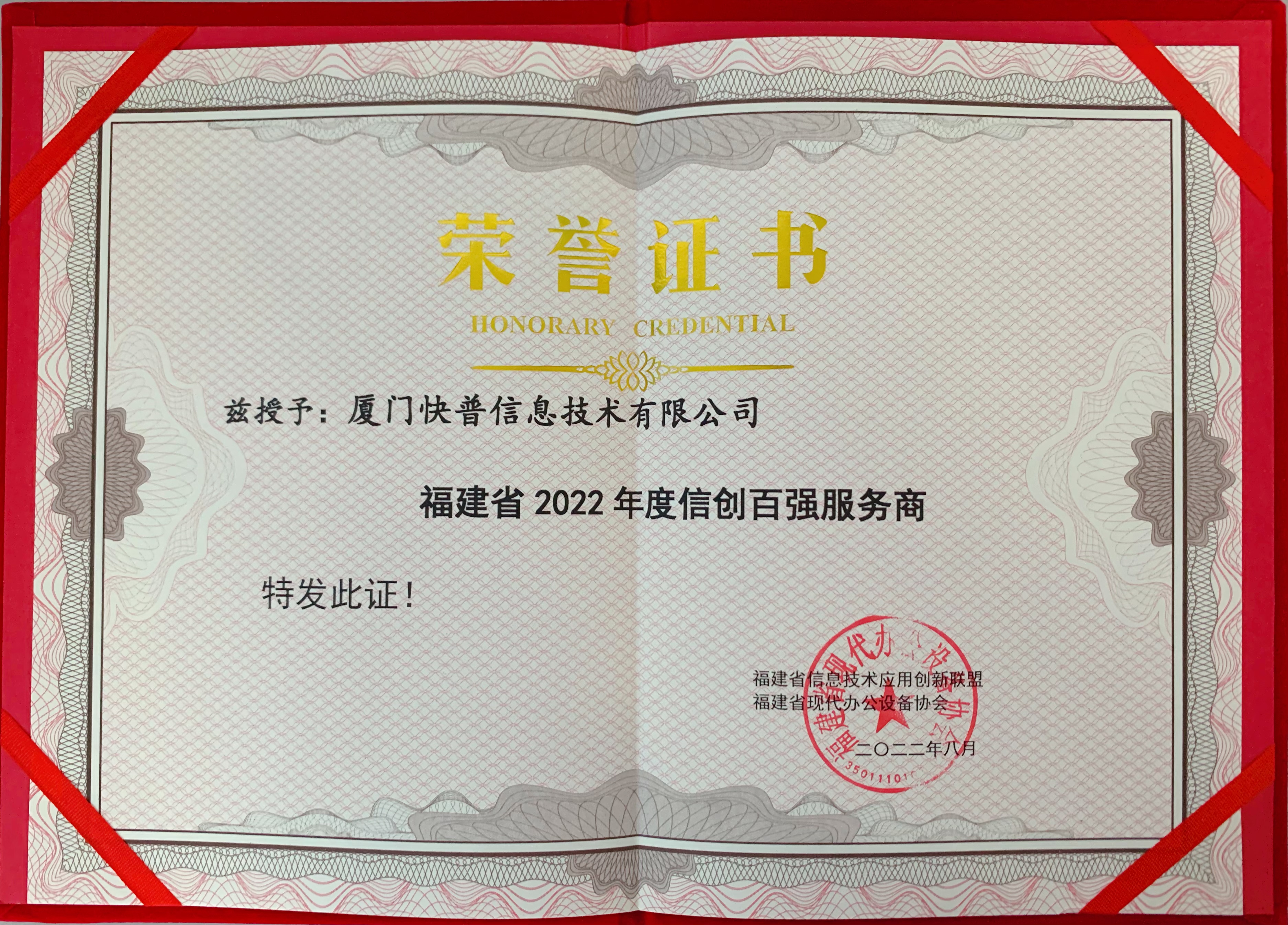 喜報:快普被評為“福建省信創(chuàng)百強服務商”