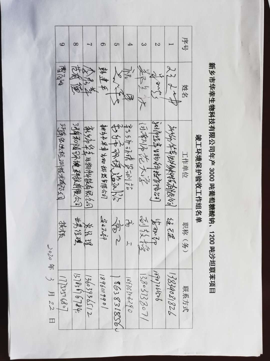 新鄉(xiāng)市華幸生物科技有限公司年產(chǎn)30000噸葡萄糖酸鈉、1200噸沙坦聯(lián)苯項(xiàng)目竣工環(huán)境保護(hù)驗(yàn)收意見(jiàn)
